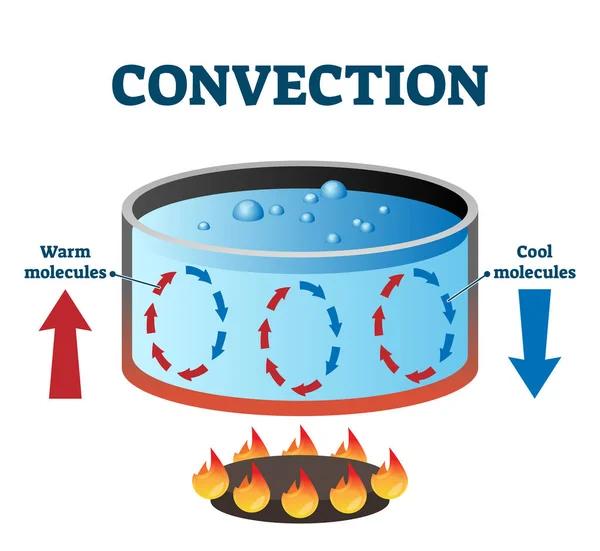 Un ejemplo cotidiano de convecciĂłn es el calentamiento del agua en una olla: el lĂquido cercano a la fuente de calor se calienta, disminuye su densidad y sube, mientras que el agua frĂa, más densa, desciende para ser calentada, generando corrientes de convecciĂłn. Este mecanismo es esencial en fenĂłmenos naturales como las corrientes oceánicas, el movimiento del aire en la atmĂłsfera y la regulaciĂłn de la temperatura corporal en organismos vivos mediante la circulaciĂłn de la sangre.